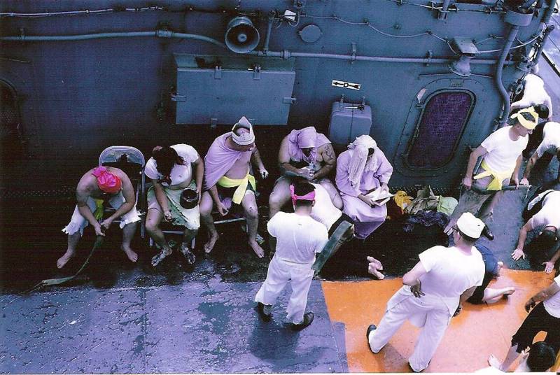 As one who was initiated on this day in 1967 as part of this crew, I for one, am proud to have joined the numbers of ancient mariners who endured this rite of passage. I am saddened that future sailors will never have the opportunity to experience this tradition which has been passed down from the days of wooden ships and iron men.